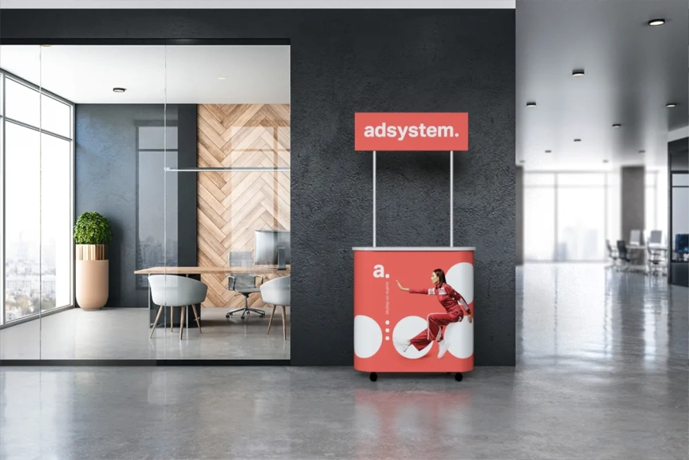 Pasirinkę adBox Elypse Mini, turėsite universalų reklaminį prekystalį, kuris derina patrauklų dizainą, paprastą naudojimą ir patvarumą bet kokiai reklaminei kampanijai.